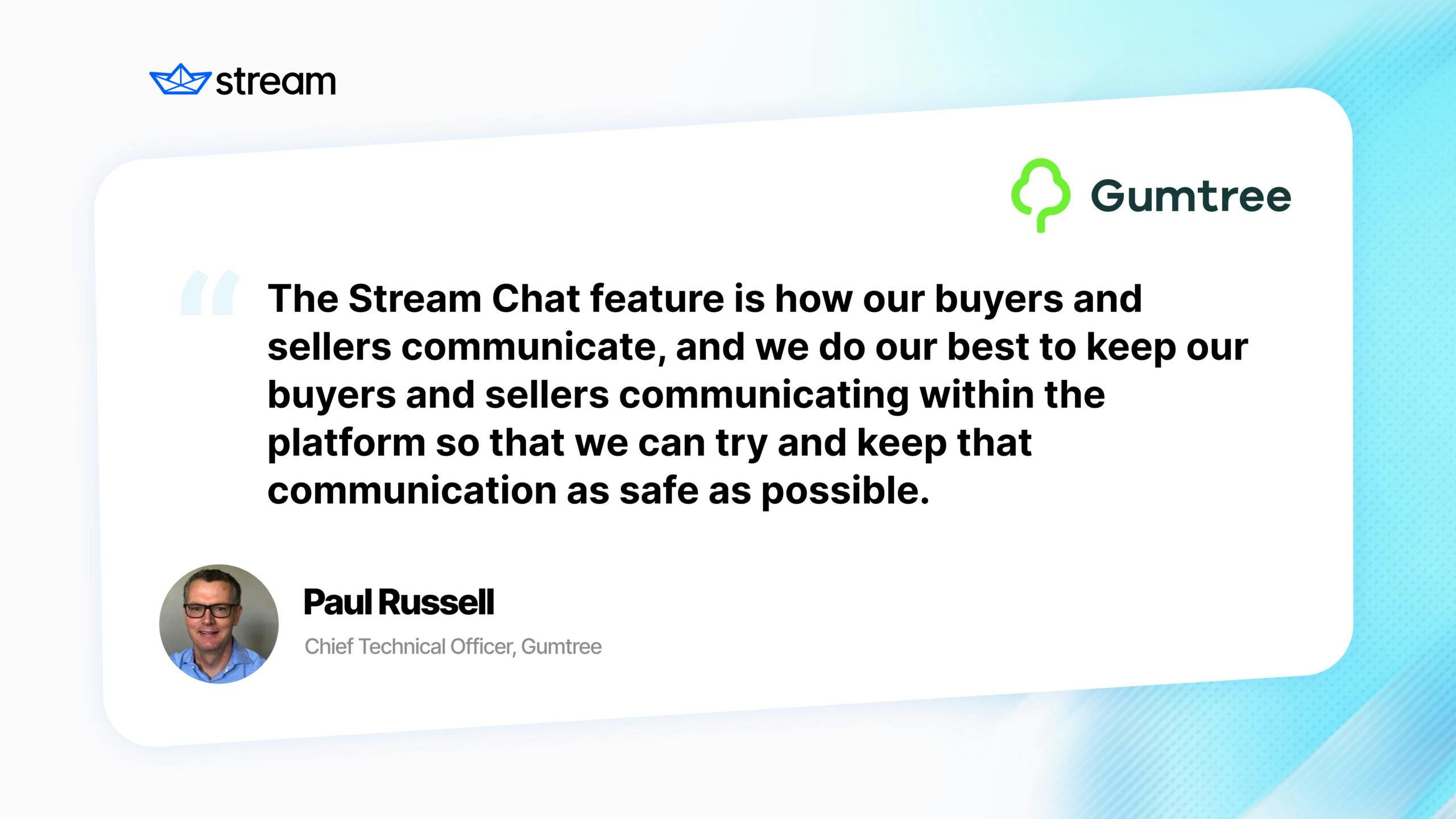 Result: Gumtree observed immediate improvements post-implementation, with users no longer reporting lost messages. Critically, Gumtree also immediately saw around a 25% drop in fraudulent messages with Stream's Auto Moderation. Overall, Gumtree's experience with Stream's chat solution has set a benchmark for safety and efficiency in online transactions, earning a wholehearted recommendation.