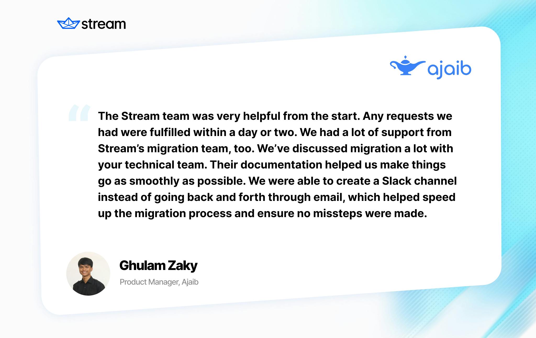 At Stream, we're sensitive to this reality, and we want to make sure our customers are as comfortable with the process as possible. We are glad to have customers like Ajaib, who have had a successful migration experience, share their stories with us.