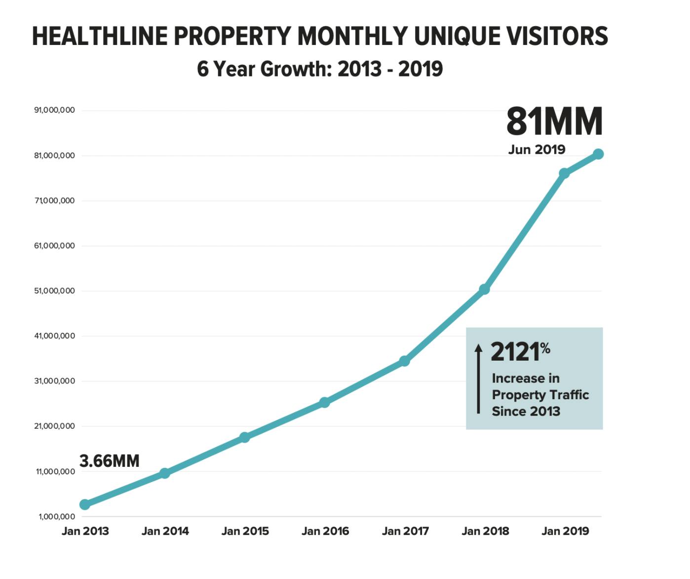 - Healthline property posted a 48 percent growth year-over-year, attracting 81 million unique visitors in June 2019.